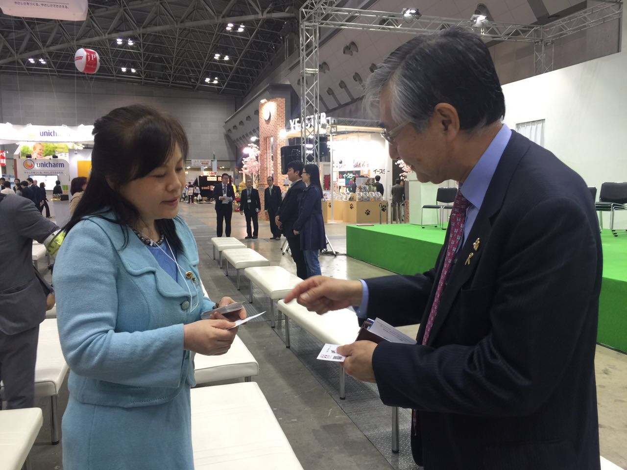 5月31日的開幕式上,CIPS主辦方長城展覽總經(jīng)理程楊女士與Interpets的發(fā)起元老越村義雄先生、日本寵物食品協(xié)會會長石山先生友好溝通,互換行業(yè)意見。